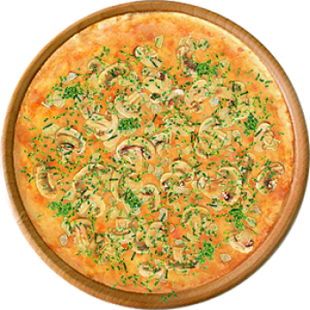 Основа: Традиционная (толстое тесто ⌀35см) (650 г) Соус: Соус красный (100 г) Топпинги: Курица копченая (50 г), Шампиньоны (50 г), Сырное ассорти (50 г) Доп. топпинги: Зелень (10 г)