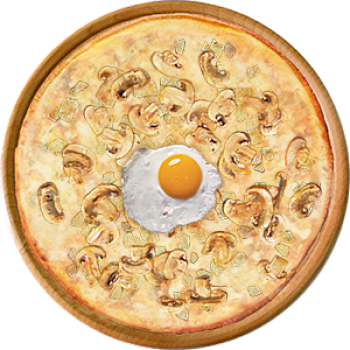 Основа: Традиционная (толстое тесто ⌀35см) (650 г) Соус: Соус белый (100 г) Топпинги: Шампиньоны (50 г), Сыр (100 г), Яйцо куриное (100 г), Курица копченая (150 г) Доп. топпинги: - нет -