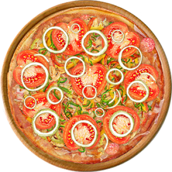 Основа: Итальянская (тонкое тесто ⌀35см) (400 г) Соус: Соус чили (100 г) Топпинги: Бекон (50 г), Грудинка (50 г), Копченые колбаски (50 г), Курица копченая (50 г), Грибное ассорти (50 г), Сыр (50 г), Болгарский перец (50 г), Помидоры (50 г) Доп. топпинги: Лук репчатый (35 г)