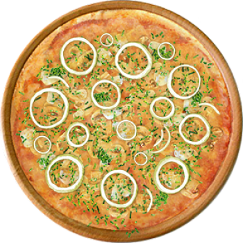 Основа: Традиционная (толстое тесто ⌀35см) (650 г) Соус: Соус чили (100 г) Топпинги: Шампиньоны (50 г), Сыр (50 г), Сыр Филадельфия (50 г), Сырное ассорти (50 г) Доп. топпинги: Зелень (10 г), Лук репчатый (35 г)