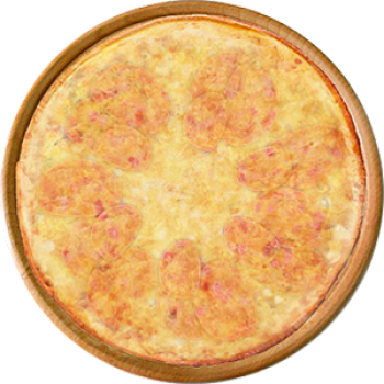 Основа: Итальянская (тонкое тесто ⌀35см) (400 г) Соус: Соус белый (100 г) Топпинги: Ветчина (50 г), Сыр (50 г), Сырное ассорти (50 г) Доп. топпинги: - нет -