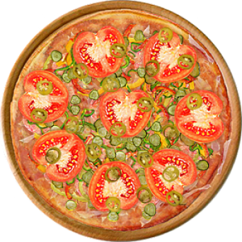 Основа: Итальянская (тонкое тесто ⌀35см) (400 г) Соус: Соус красный (100 г) Топпинги: Бекон (50 г), Ветчина (50 г), Салями (50 г), Сыр (50 г), Болгарский перец (50 г), Помидоры (50 г) Доп. топпинги: - нет -
