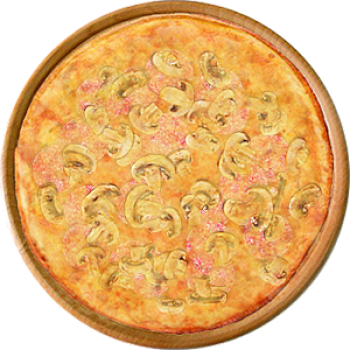 Основа: Итальянская (тонкое тесто ⌀35см) (400 г) Соус: Соус красный (100 г) Топпинги: Салями (50 г), Шампиньоны (50 г), Сыр (50 г), Сырное ассорти (100 г) Доп. топпинги: - нет -