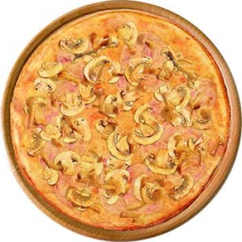 Основа: Итальянская (тонкое тесто ⌀35см) (400 г) Соус: Соус красный (100 г) Топпинги: Ветчина (50 г), Грибное ассорти (50 г), Сырное ассорти (50 г) Доп. топпинги: - нет -