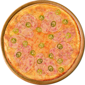 Основа: Итальянская (тонкое тесто ⌀35см) (400 г) Соус: Соус красный (100 г) Топпинги: Сыр (50 г), Халапеньо (50 г), Ветчина (100 г) Доп. топпинги: - нет -