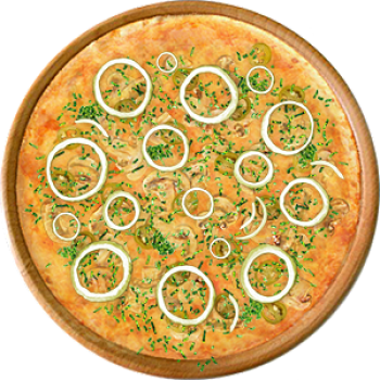 Основа: Традиционная (толстое тесто ⌀35см) (650 г) Соус: Соус красный (100 г) Топпинги: Шампиньоны (50 г), Сыр (50 г), Сырное ассорти (50 г) Доп. топпинги: Зелень (10 г), Лук репчатый (35 г)