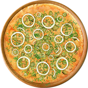 Основа: Традиционная (толстое тесто ⌀35см) (650 г) Соус: Соус красный (100 г) Топпинги: Шампиньоны (50 г), Сыр (50 г), Сырное ассорти (50 г), Огурчики (50 г) Доп. топпинги: Зелень (10 г), Лук репчатый (35 г)