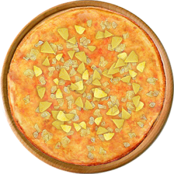 Основа: Итальянская (тонкое тесто ⌀35см) (400 г) Соус: Соус красный (100 г) Топпинги: Курица копченая (50 г), Сырное ассорти (50 г), Ананасы (50 г) Доп. топпинги: - нет -