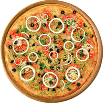 Основа: Итальянская (тонкое тесто ⌀35см) (400 г) Соус: Соус красный (100 г) Топпинги: Ветчина (50 г), Грибное ассорти (50 г), Сыр (50 г), Сырное ассорти (50 г), Помидоры (50 г), Маслины (50 г) Доп. топпинги: Зелень (10 г), Лук репчатый (35 г)