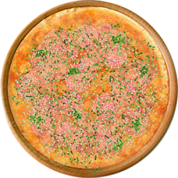 Основа: Традиционная (толстое тесто ⌀35см) (650 г) Соус: Соус красный (100 г) Топпинги: Ветчина (50 г), Салями (50 г), Сыр (50 г) Доп. топпинги: Зелень (10 г), Кунжут (10 г)