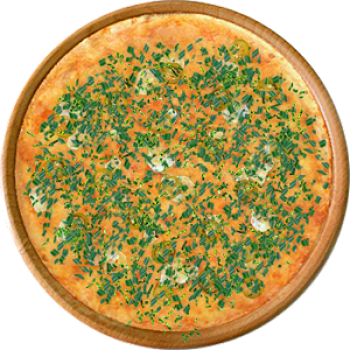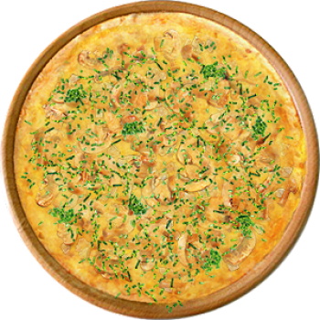 Основа: Традиционная (толстое тесто ⌀35см) (650 г) Соус: Соус сырный (100 г) Топпинги: Курица копченая (50 г), Грибное ассорти (50 г), Сыр (50 г), Сырное ассорти (100 г) Доп. топпинги: Зелень (10 г)