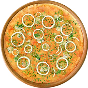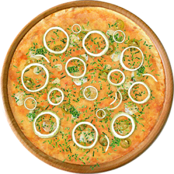 Основа: Традиционная (толстое тесто ⌀35см) (650 г) Соус: Соус красный (100 г) Топпинги: Сыр Филадельфия (50 г), Сырное ассорти (50 г), Халапеньо (50 г) Доп. топпинги: Зелень (10 г), Лук репчатый (35 г)