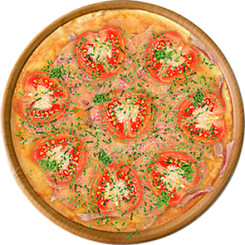Основа: Традиционная (толстое тесто ⌀35см) (650 г) Соус: Соус красный (100 г) Топпинги: Сыр (50 г), Помидоры (50 г) Доп. топпинги: Зелень (10 г)