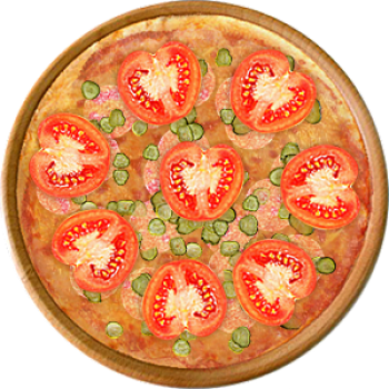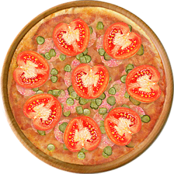 Основа: Традиционная (толстое тесто ⌀35см) (650 г) Соус: Соус красный (100 г) Топпинги: Салями (50 г), Сырное ассорти (50 г), Огурчики (50 г), Помидоры (50 г) Доп. топпинги: - нет -