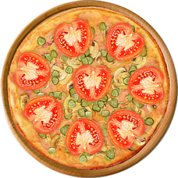 Основа: Итальянская (тонкое тесто ⌀35см) (400 г) Соус: Соус красный (100 г) Топпинги: Ветчина (50 г), Шампиньоны (50 г), Сырное ассорти (50 г), Огурчики (50 г), Помидоры (50 г) Доп. топпинги: - нет -
