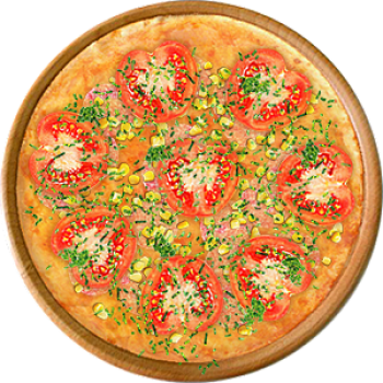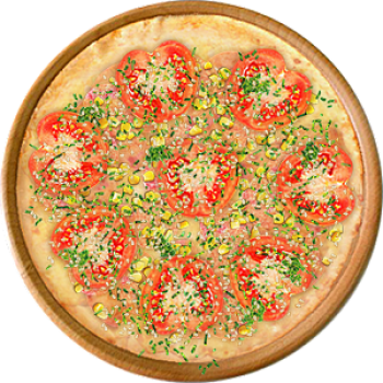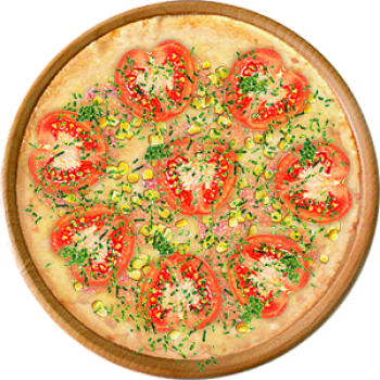 Основа: Традиционная (толстое тесто ⌀35см) (650 г) Соус: Соус красный (100 г) Топпинги: Салями (50 г), Сырное ассорти (50 г), Кукуруза (50 г), Помидоры (50 г) Доп. топпинги: Зелень (10 г)