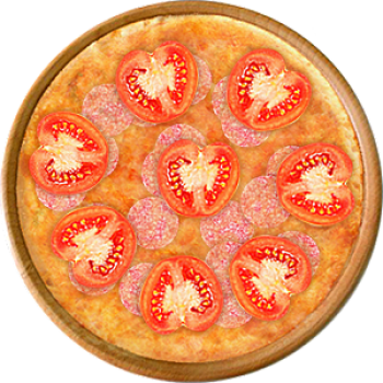 Основа: Традиционная (толстое тесто ⌀35см) (650 г) Соус: Соус красный (100 г) Топпинги: Помидоры (50 г), Салями (100 г), Сыр (100 г) Доп. топпинги: - нет -