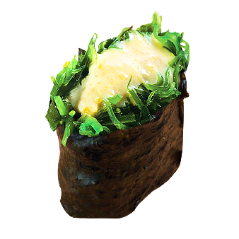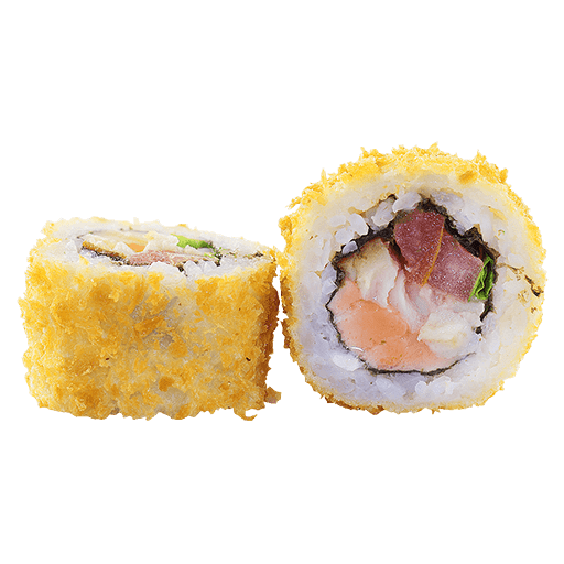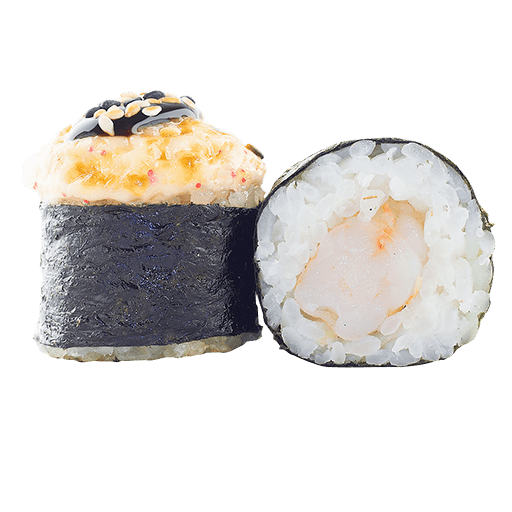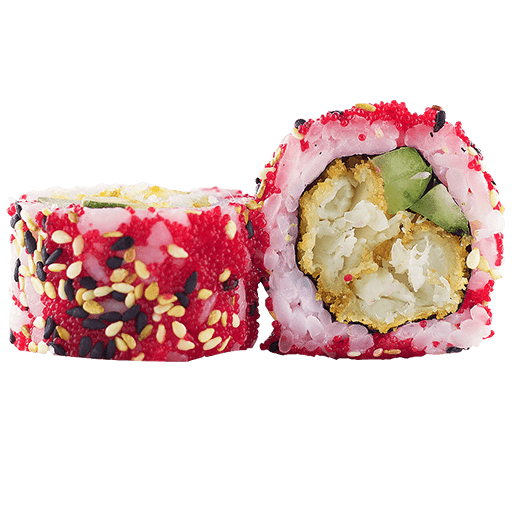 Рис, нори, снежный краб, огурец, сливочный сыр, тобико, сырная шапочка