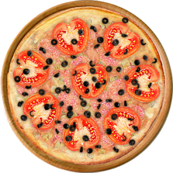 Основа: Итальянская (тонкое тесто ⌀35см) (400 г) Соус: Соус белый (100 г) Топпинги: Ветчина (100 г), Курица копченая (100 г), Салями (150 г), Сыр (150 г), Помидоры (150 г), Маслины (150 г) Доп. топпинги: - нет -