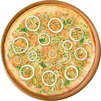 Основа: Итальянская (тонкое тесто ⌀35см) (400 г) Соус: Соус белый (100 г) Топпинги: Креветки (50 г), Лосось (100 г), Сырное ассорти (100 г) Доп. топпинги: Зелень (10 г), Лук репчатый (35 г)