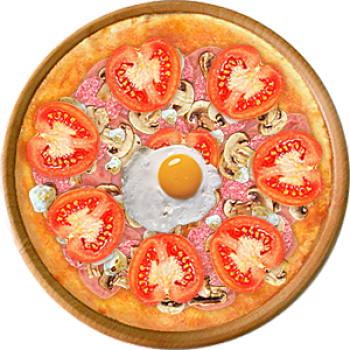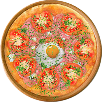 Основа: Традиционная (толстое тесто ⌀35см) (650 г) Соус: Соус красный (100 г) Топпинги: Балык (50 г), Ветчина (50 г), Салями (50 г), Шампиньоны (50 г), Сыр Филадельфия (50 г), Помидоры (50 г), Яйцо куриное (50 г) Доп. топпинги: - нет -