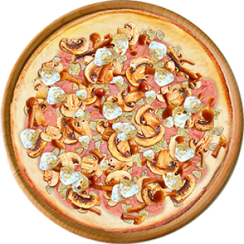 Основа: Итальянская (тонкое тесто ⌀35см) (400 г) Соус: Соус белый (100 г) Топпинги: Балык (50 г), Ветчина (50 г), Курица копченая (50 г), Грибное ассорти (100 г), Сыр Филадельфия (100 г) Доп. топпинги: - нет -