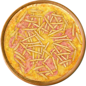Основа: Традиционная (толстое тесто ⌀35см) (650 г) Соус: Соус сырный (100 г) Топпинги: Ветчина (50 г), Сыр (50 г), Картофель фри (50 г) Доп. топпинги: - нет -