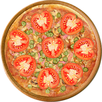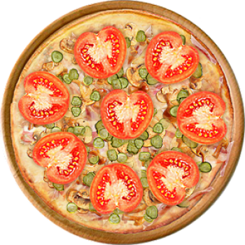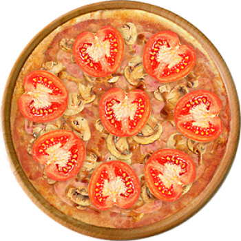 Основа: Традиционная (толстое тесто ⌀35см) (650 г) Соус: Соус чили (100 г) Топпинги: Грибное ассорти (50 г), Помидоры (50 г), Ветчина (100 г), Сыр (100 г) Доп. топпинги: - нет -