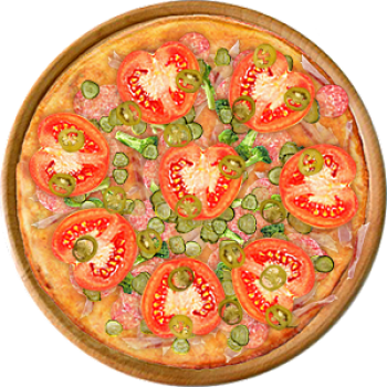 Основа: Итальянская (тонкое тесто ⌀35см) (400 г) Соус: Соус красный (100 г) Топпинги: Бекон (50 г), Копченые колбаски (50 г), Салями (50 г), Сыр (50 г), Брокколи (50 г), Огурчики (50 г), Помидоры (50 г), Халапеньо (50 г) Доп. топпинги: - нет -