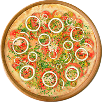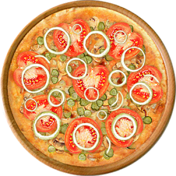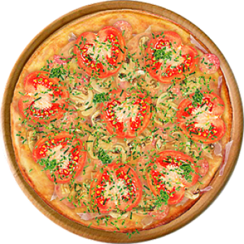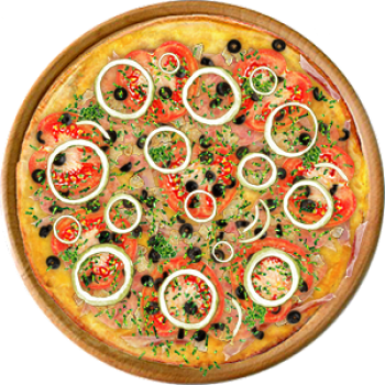 Основа: Традиционная (толстое тесто ⌀35см) (650 г) Соус: Соус красный (100 г) Топпинги: Курица копченая (50 г), Грибное ассорти (50 г), Огурчики (50 г), Помидоры (50 г), Сыр (100 г) Доп. топпинги: Лук репчатый (35 г)
