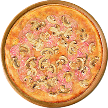 Основа: Итальянская (тонкое тесто ⌀35см) (400 г) Соус: Соус красный (100 г) Топпинги: Ветчина (50 г), Салями (50 г), Шампиньоны (50 г), Сыр (50 г) Доп. топпинги: - нет -