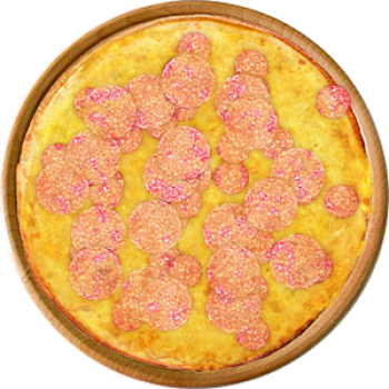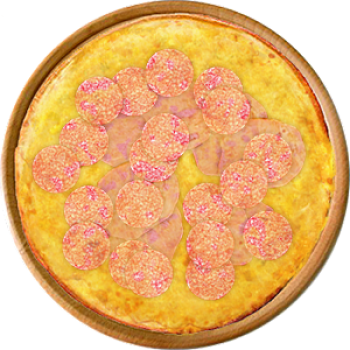 Основа: Итальянская (тонкое тесто ⌀35см) (400 г) Соус: Соус сырный (100 г) Топпинги: Копченые колбаски (50 г), Сырное ассорти (50 г), Салями (150 г) Доп. топпинги: - нет -