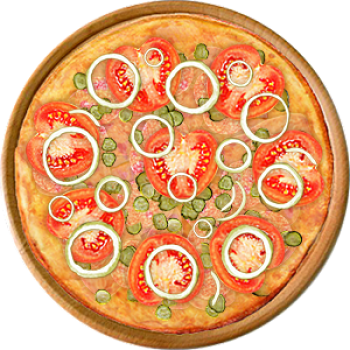 Основа: Традиционная (толстое тесто ⌀35см) (650 г) Соус: Соус красный (100 г) Топпинги: Курица копченая (50 г), Шампиньоны (50 г), Болгарский перец (50 г), Помидоры (50 г), Сыр (100 г) Доп. топпинги: Лук репчатый (35 г)
