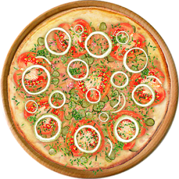 Основа: Итальянская (тонкое тесто ⌀35см) (400 г) Соус: Соус красный (100 г) Топпинги: Балык (50 г), Ветчина (50 г), Салями (50 г), Сырное ассорти (50 г), Огурчики (50 г), Помидоры (50 г) Доп. топпинги: Лук репчатый (35 г)