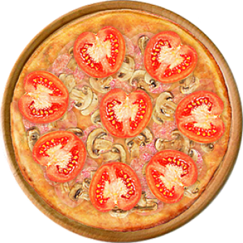 Основа: Итальянская (тонкое тесто ⌀35см) (400 г) Соус: Соус красный (100 г) Топпинги: Ветчина (50 г), Салями (50 г), Шампиньоны (50 г), Сыр (50 г), Помидоры (50 г) Доп. топпинги: - нет -