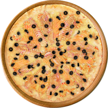 Основа: Традиционная (толстое тесто ⌀35см) (650 г) Соус: Соус белый (100 г) Топпинги: Креветки (50 г), Лосось (50 г), Сырное ассорти (50 г), Маслины (50 г), Окунь (филе) (100 г) Доп. топпинги: - нет -