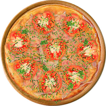 Основа: Итальянская (тонкое тесто ⌀35см) (400 г) Соус: Соус красный (100 г) Топпинги: Бекон (50 г), Помидоры (50 г), Ветчина (100 г), Сыр (100 г) Доп. топпинги: Зелень (10 г)