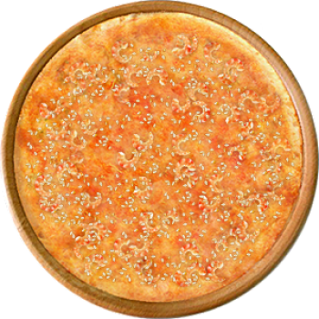 Основа: Традиционная (толстое тесто ⌀35см) (650 г) Соус: Соус красный (100 г) Топпинги: Сыр (50 г), Креветки (150 г) Доп. топпинги: Кунжут (10 г)