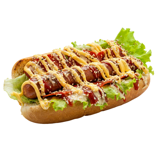 сосиска,сырный соус,кетчуп,салат,пеперони,кунжут =)