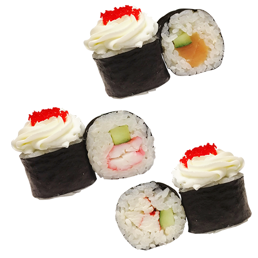Ролл сливочный краб, Ролл сливочная креветка, ролл сливочный лосось, 24шт, Комплектация...